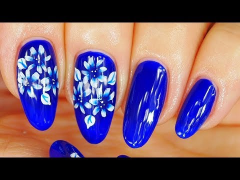 Nail Art. Blue Design !!! Easy Flowers !!!